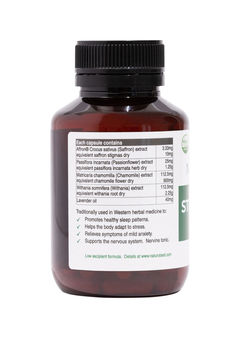 Vegan-friendly herbal formulation to help the body adapt to stress and to support healthy sleeping patterns.