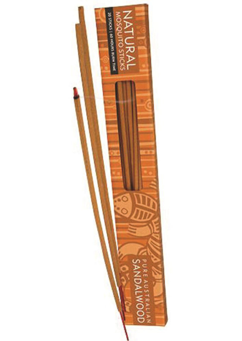 Natural Mosquito sticks with the inclusion of pure Australian Sandalwood to assist in repelling insects effectively. Each stick burns for approximately 3 hours and fits perfectly with Pure Australian Sandalwood Mosquito Stick Diffuser.